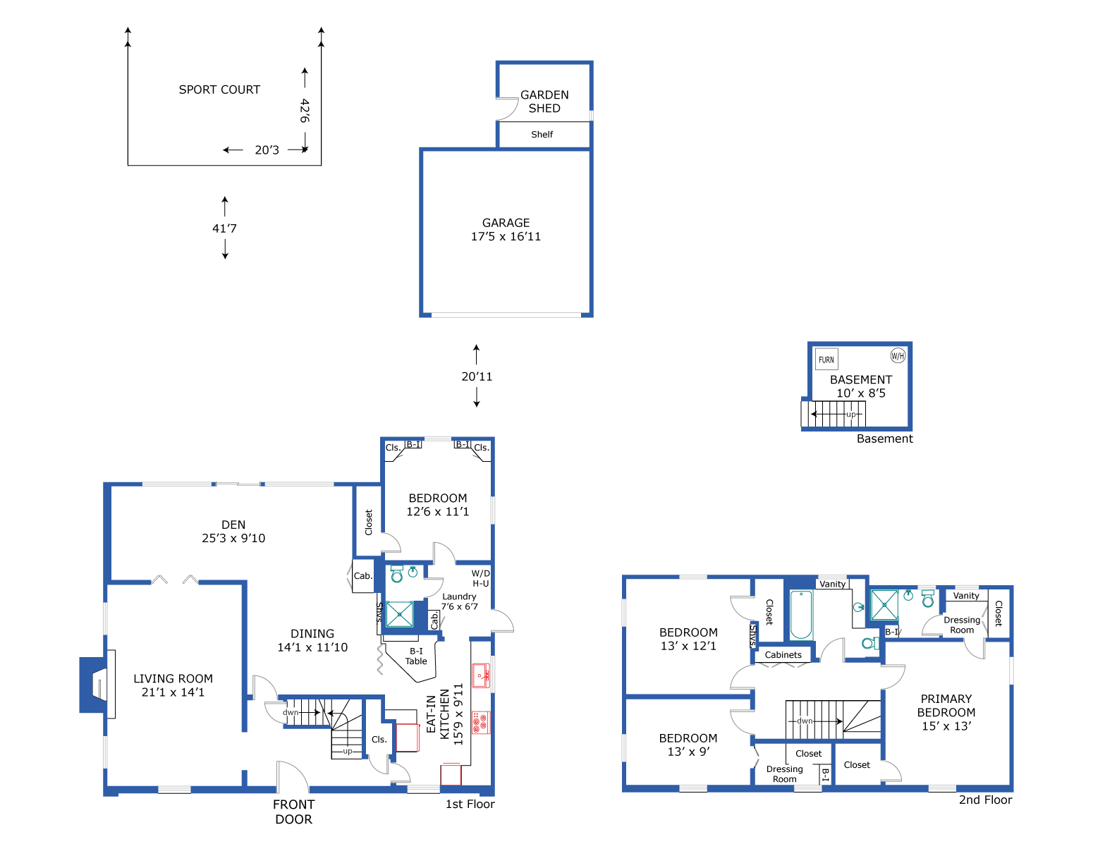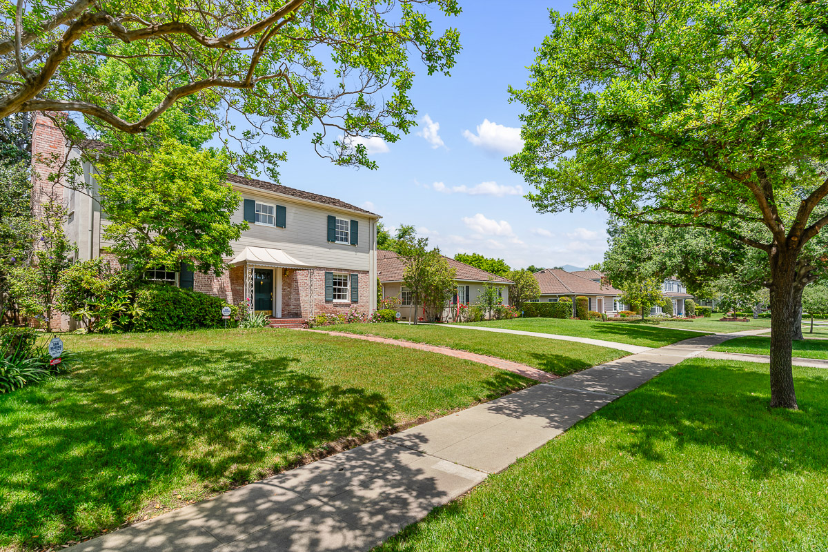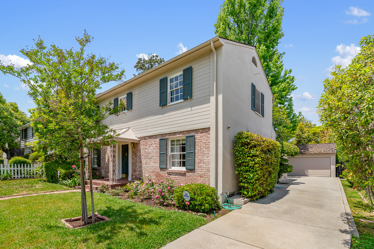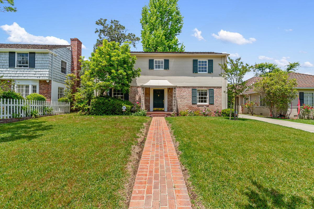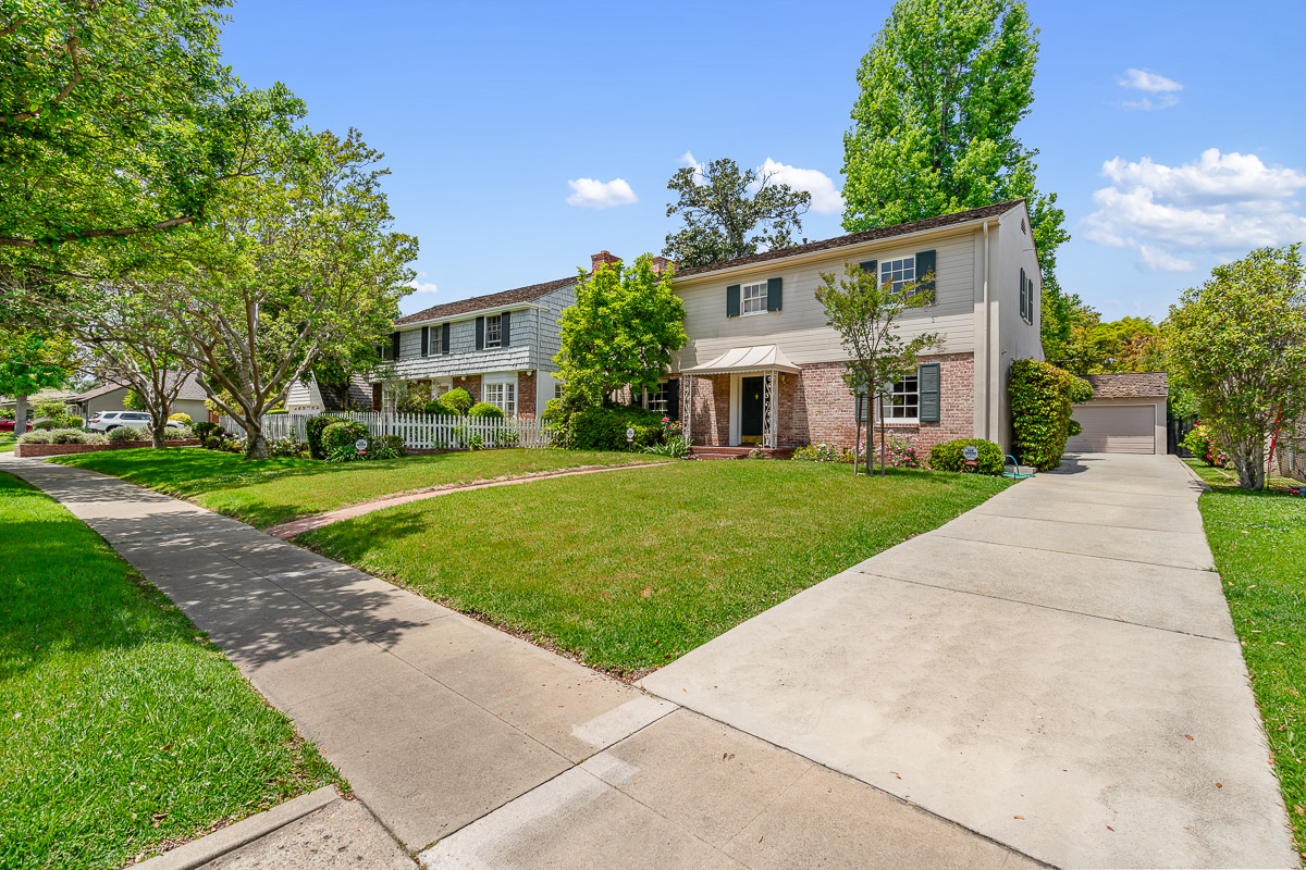 Classic Colonial. First time on the market in 62 years. Brick faced home nestled in a picture-perfect tranquil and pristine tree-lined street in the beautiful City of San Marino. The formal front door entry, with hardwood floors and spacious walk-in closet leads to the stately living room with elegant crown moldings and a brick wood burning fireplace. The dining area has an abundance of cabinets and storage and is connected to a large family room with natural light and views of the lush landscaped backyard. There is a guest bedroom and 3/4 bath off of the kitchen. Upstairs boasts two large bedrooms and a full bath as well as a master bedroom suite with a walk-in closet, elegant vanity table and dressing area with a large second closet. The two car garage with an automatic door attaches to a multi-purpose garden shed. There is a sports court and built-in brick fireplace/grill in the backyard as well. Private and peaceful, this is truly a treasured location and a home to enjoy.